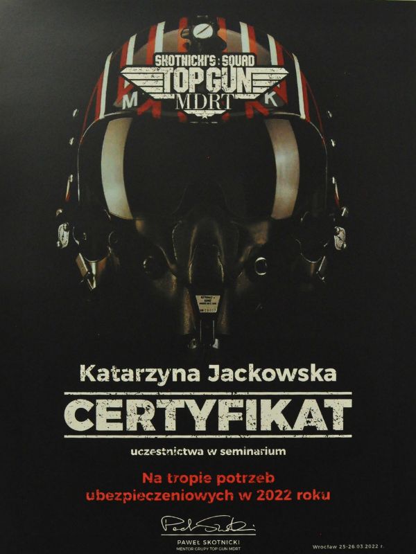 Ambasadorka i certyfikowany doradca Polskiego Stowarzyszenia Rekomendowanych Doradców Ubezpieczeniowych (PSRDU) - niezależnej organizacji zrzeszającej sprawdzonych, rzetelnych i odnoszących sukcesy doradców z różnych towarzystw ubezpieczeniowych w Polsce.